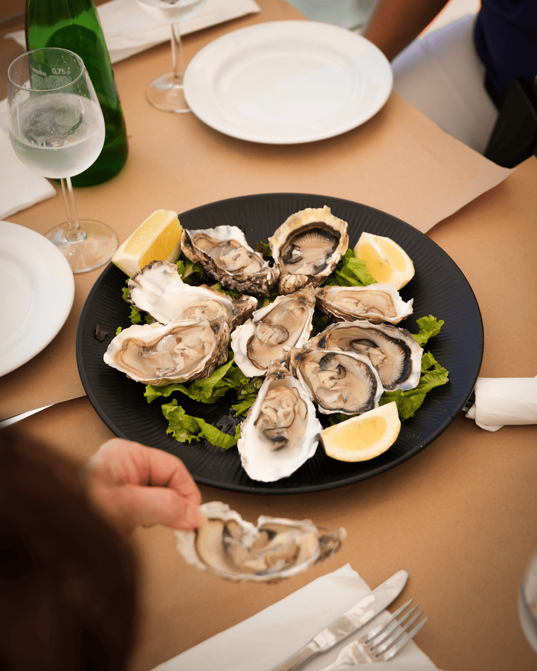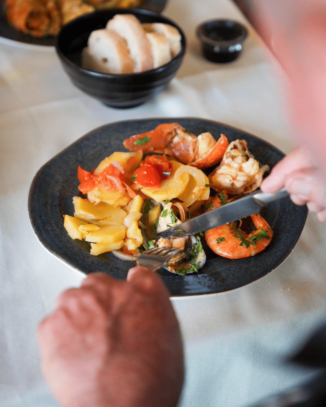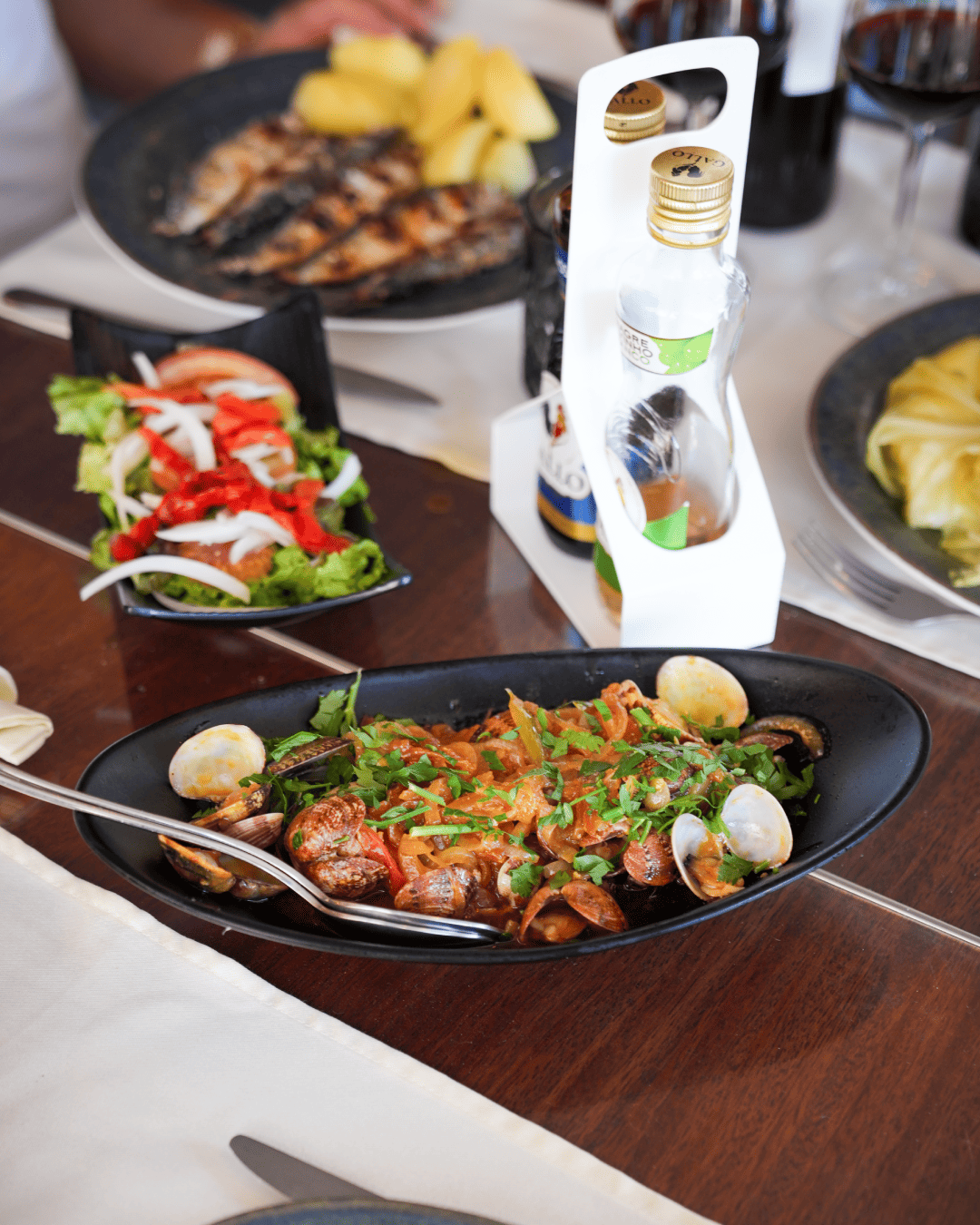 Chegámos na hora de ponta do almoço, e embora o restaurante estivesse quase cheio fomos imediatamente sentados numa mesa agradável à janela com vista para o mar. O serviço foi impecável e a comida estava perfeita: uns dos melhores camarões com alho que comi nos últimos tempos. O preço, embora possa parecer elevado, é completamente justificado pelo atendimento, frescura e sabor da comida, ambiente calmo, e uma vista agradável.